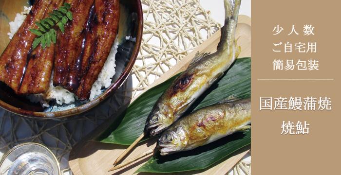 当店の定番商品【国産鰻蒲焼・焼鮎】を、自宅用簡易包装、少量発送開始致しました。